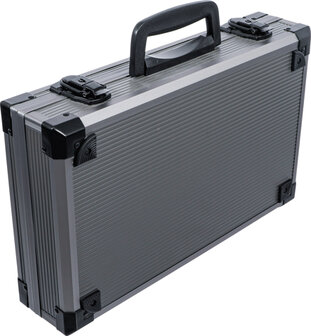 en un robusto maletín de plástico ABS con esquinas reforzadas que protegen el maletín de los daños y lo hacen especialmente duradero